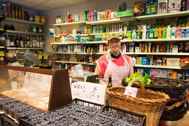 Vendiamo frutta e verdura fresca, alimentari vari e formaggi e salumi locali.