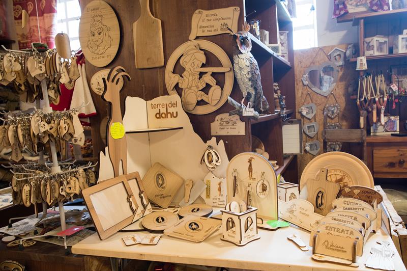 Oltre alla produzione di oggettistica in legno e tessuto personalizzabili, vendiamo oggetti difficili da trovare altrove, come maglioni norvegesi originali, tessuti francesi e del Trentino e orologi a cucù della Foresta Nera.