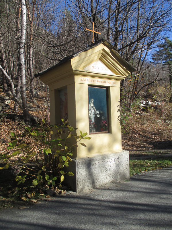 L’itinerario verso valle scende in Piazza III Alpini, attraversa la SR 23 e percorre via Don Bosco, Via re Umberto e via Roma, per immettersi in via Gütermann. In quel punto è presente il pannello illustrativo del successiva porzione di percorso.