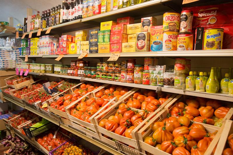 Vendiamo frutta e verdura fresca, alimentari vari e formaggi e salumi locali.