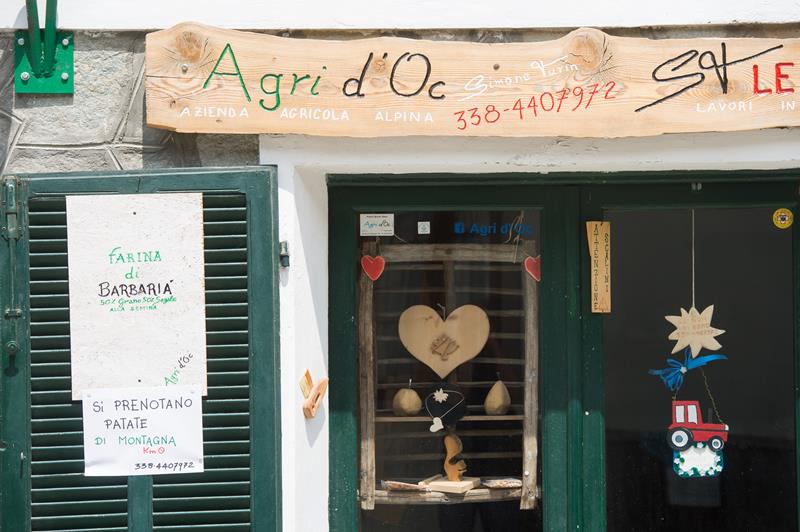 La nostra azienda agricola produce patate di montagna, prodotti dell'orto, frutti di bosco, lavanda e farina barbarià. La nostra farina barbarià è per metà di grano e metà di segale, viene mescolata al momento della semina e successivamente macinata con un mulino a pietra. Ad alcune delle nostre produzioni, come la patate viola, le zucchine e la farina barbarià mettiamo il marchio Terre del Dahu.