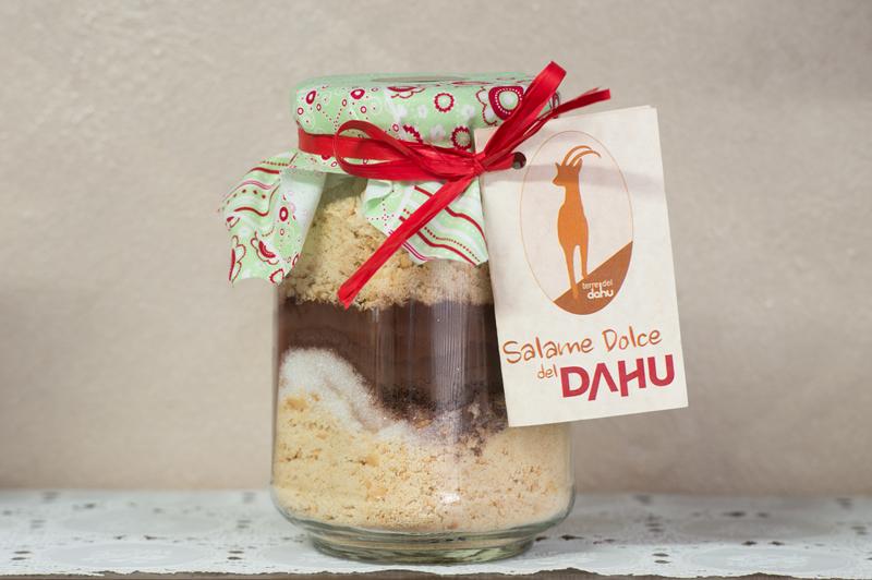 La nostra gastronomia propone cibi a km0 e sfiziosi piatti pronti della tradizione piemontese e nazionale. Per Terre del Dahu abbiamo creato due dolci delizie: il salame dolce del dahu e B&B. Il nostro salame dolce del dahu è un prodotto in kit: il vasetto contiene gli ingredienti e le istruzioni per realizzare il salame di cioccolato in casa. B&B è un dolce nato dall’incontro tra il DolcePerosa, nostra esclusiva molto apprezzata, e il cioccolato fondente.