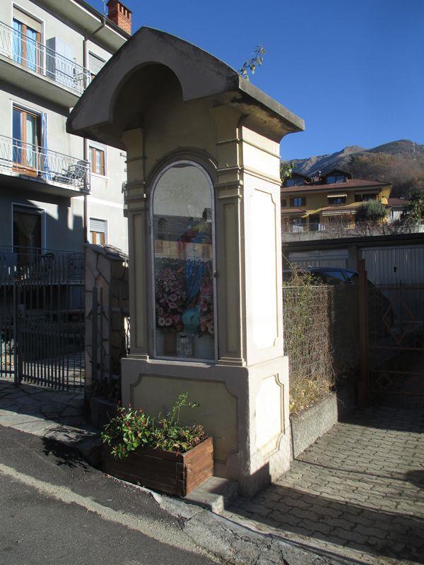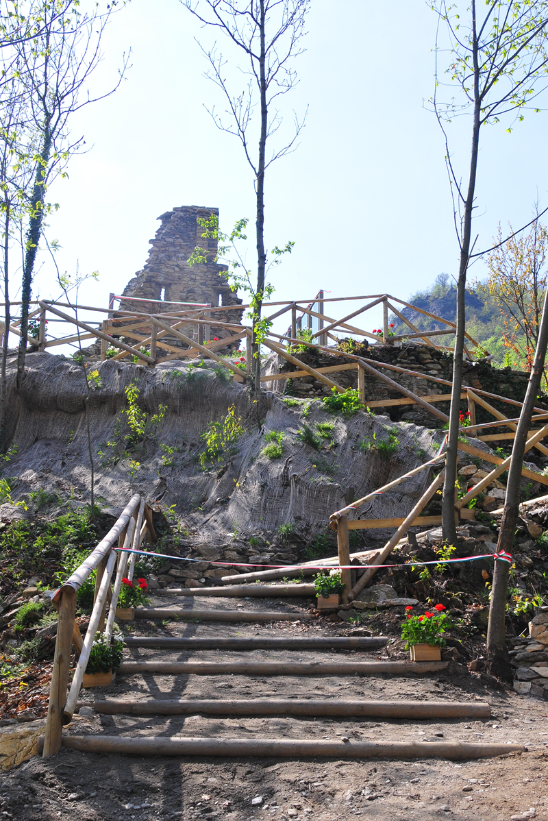 L’itinerario verso valle scende in Piazza III Alpini, attraversa la SR 23 e percorre via Don Bosco, Via re Umberto e via Roma, per immettersi in via Gütermann. In quel punto è presente il pannello illustrativo del successiva porzione di percorso.