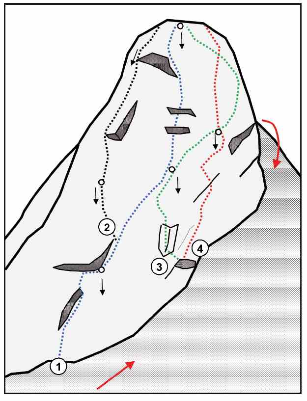 Il Dente Orientale presenta, verso est, una parte verticale di circa 60 metri, sulla quale sono stati aperti a metà anni ’80 quattro itinerari, attrezzati dal 2007. 1) - Pour Aline 2) - la luna piena 3) - Zig zag 4) – Burundi
